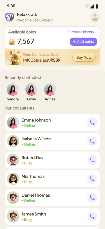 At relaxtalk, our commitment lies in fostering your journey towards mental well-being. Our inclusive services extend to all, regardless of location. Through serene voice calls, counseling sessions, and virtual consultations, we strive to provide a sanctuary for healing. Our ultimate aim is to guide you towards emotional equilibrium with our tailored approach.
